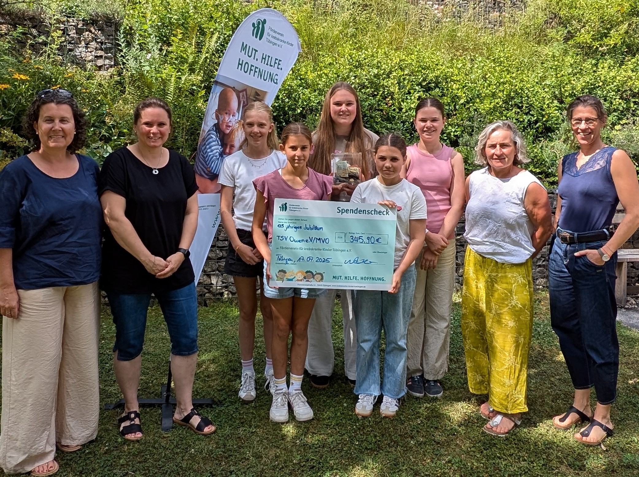 Am 22. Juli fand am Owener Rathausplatz die Übergabe der Spende an den „Häuslichen Kinder- und Jugend-Hospizdienst“ Kirchheim/Teck statt.